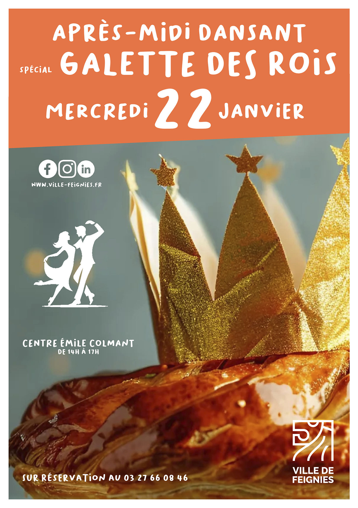 janvier, 2025 Après-midi dansant Galette des Rois 2025mer22jan14 h 00 min17 h 00 minAprès-midi dansant Galette des Roisorganisé par le Pôle Éducation, Citoyenneté et Solidarités14 h 00 min - 17 h 00 min Type d'événement:Fêtes,Jeunesse,Personnes âgées,Solidarité Détails de l'événement Détails de l'événement Date(Mercredi) 14 h 00 min - 17 h 00 min CalendrierCalendrier Google