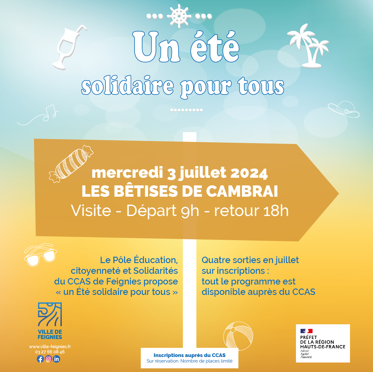 juillet, 2024 Un été solidaire Visite usine Bêtises de Cambrai Centre Emile Colmant rue Alfred Derkenne 2024mer03juil9 h 00 min18 h 00 minUn été solidaire Visite usine Bêtises de CambraiDans le cadre d'un été solidaire pour tous9 h 00 min - 18 h 00 min Centre Emile Colmant, rue Alfred DerkenneType d'événement:Culture,Jeunesse,Solidarité Détails de l'événement Détails de l'événement Date (Mercredi) 9 h 00 min - 18 h 00 min LieuCentre Emile Colmantrue Alfred Derkenne CalendrierCalendrier Google